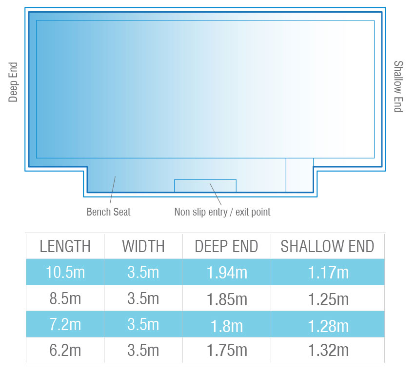 Our Majestic Slimline Swimming Pools also have a child safety ledge.